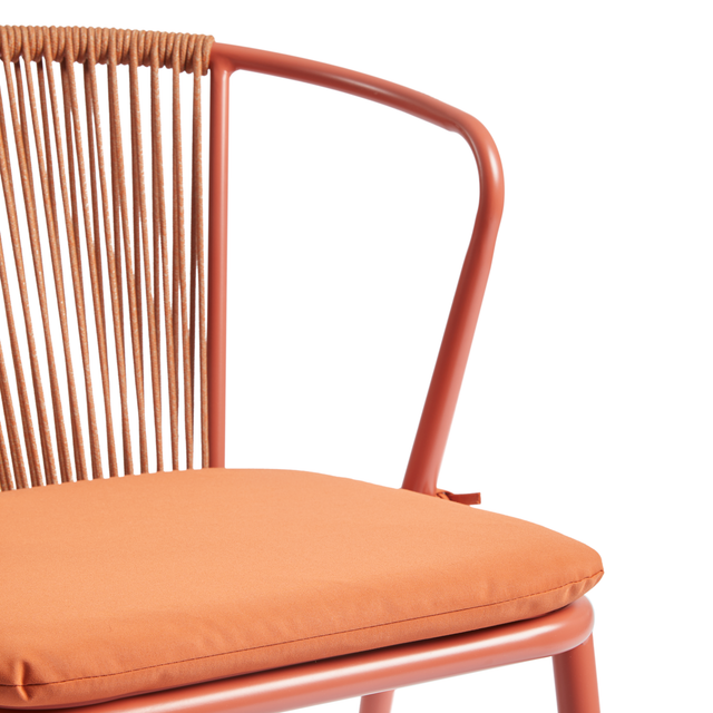 The KENDAL Arm chair introduces a tactile, luxurious texture to your outdoor collection. It is lightweight and features a strong, meticulously hand-woven rope design, combining structural integrity with an artisanal aesthetic for a truly distinctive piece of garden seating.